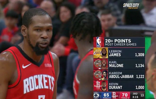 歷史第4人!杜蘭特1000場(chǎng)20+里程碑 距詹姆斯差309場(chǎng)難超越