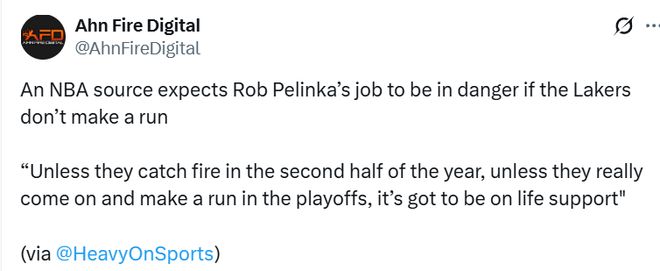 美媒Heavy報道稱,一位NBA消息源稱:“除非湖人下半程突然爆發(fā)、在季后賽打出一番成績,否則佩林卡的位置岌岌可危,很難繼續(xù)留任。擁有詹姆斯和東契奇,今年還要打附加賽的話,已經(jīng)沒什么借口可找。佩林卡在聯(lián)盟里還有威信嗎?他有清晰的建隊藍(lán)圖嗎?這才是問題所在。”